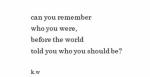 „Könnt Ihr Euch erinnern – Wer – Ihr wart bevor die Welt euch gesagt hat wer Ihr sein sollt?“